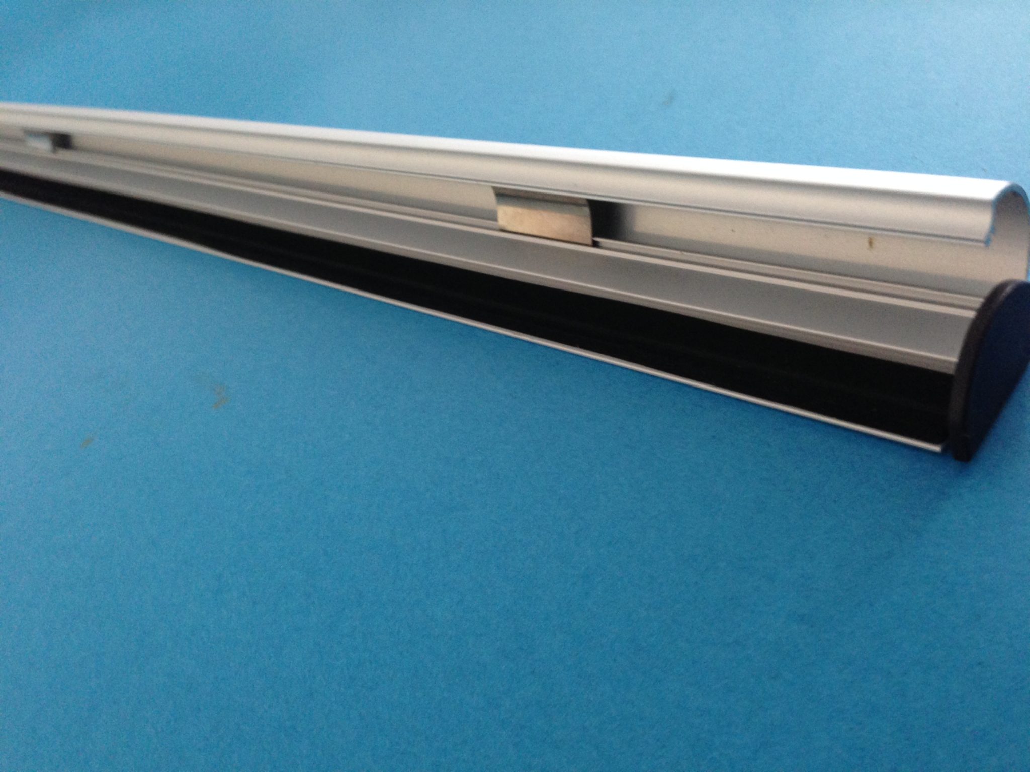 Aluminium Poster ophangsysteem. Set van 2 profielen, beide voorzien van anti-slip rubber in het achterste profiel. Zilver geanodiseerd Premium A1 Quality – 140 cm breed.