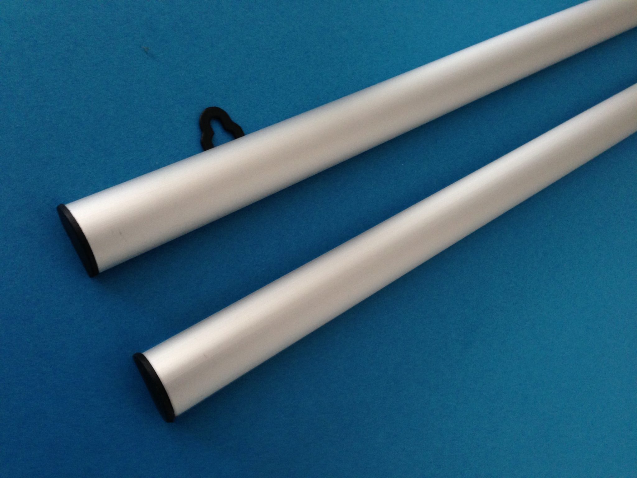 Poster ophangsysteem – Set van 2 aluminium klem ophangprofielen, beide voorzien van anti-slip rubber. De strips zijn voorzien van metalen klemveren, zodat het profiel uw poster goed vasthoud. De set wordt geleverd met 2 ophangogen in het bovenste profiel en beide zijn voorzien van zwarte eindkappen. Een fraai en degelijk ophangsysteem. A1 Premium Quality – Zilver geanodiseerd – 140 cm breed.
