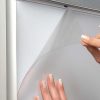 U kunt de tafelbanner voor veel verschillende doeleinden gebruiken. De banner wordt aan de onder- en bovenkant bevestigd met een plakstrip.